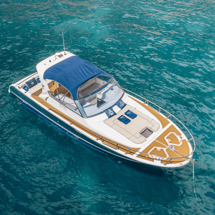 The deck of the Gagliotta Jores invites you to bask in the sun, dine al fresco, or simply soak in the breathtaking vistas of the open sea. The comfortable pillows can host 4 people and on the back other 6 people, creating the perfect ambience for a leisurely tour along the coast or a romantic sunset experience.